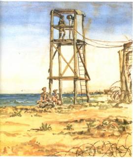 שמואל כץ, מחנה מעצר עתלית, צבעי מים, 1947 |