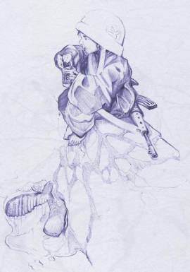 | רמי ארמה, זכרון טרי, דיוקן עצמי, עץ, מתכת, פיסול, טכניקה מעורבת 2006 |