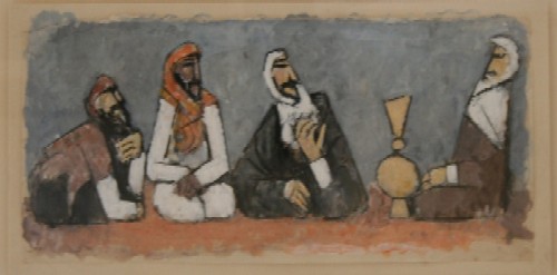 אריה לובין (1897-1981) יליד ארה"ב משפחה ששמרה מסורת יהודית. הוא עלה לארץ מתוך מגמה ללמוד בגימנסיה הרצליה אולם עם פרוץ מלחמת העולם ה1 חזר לארה"ב ולמד במכון לאמנות בשיקגו. ב1918 חזר לארץ, התידד עם מלניקוב, מנחם שמי ונחום גוטמן. עם סיום המלחמה חזר לארה"ב, סיים לימודיו וחזר ועלה לארץ ב1923. הוא נחשף לאמנות המודרנית יותר מאמנים אחרים בארץ, הוא ראה עבודות של פיקאסו, סזן ומאטיס בצרפת וארה"ב. הוא התרשם מהדמויות ה"מזרחיות" של הערבים בארץ והירבה לציירם, בכך יצר סגנון יחודי. בשונה מהקווים המעוגלים שהדמויות של גוטמן למשל, לובין יוצר תנועה ודינמיקה דרך צורות מחודדות, בעלות צבעים עזים. הוא רואה בתמונה "תרגיל" כאילו אינן גמורות, תמונות שיש לעבוד ולעבד עוד ועוד. |