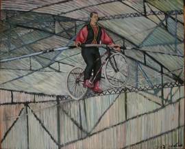 אחמד כנעאן, אמן ישראלי ערבי מכפר תמרה, בגליל. כנעאן אמן יוצר במגוון תחומי אמנות פלסטית, ציור, פיסול בעץ, בברזל, באבן, ויוצר בטכניקה מעורבת. נושאי יצירתו לקוחים מסביבתו מחיי הכפר לבין החיים במציאות ישראלית עכשווית. מצד אחד המסורת, התרבות העתיקה השואבת מאגדות, מפולקלור הערבי, מדמויים המורכבים מאלמנטים דקורטיביים מאמנות האיסלאם, מצד שני, המציאות של חיים כערבי ישראלי במצב הפוליטי המורכב. בעבודתו ובחייו מנסה אחמד כנעאן לגשר ולמצוא דרך בין הניגוד בעולמות. עבודתו עוסקת בחיפוש הזהות, בהדגשת מורשתו ומקורותיו, בהתמודדות עם מציאות של חברה במיעוט, יחד עם ניסיון השתלבות בחוגי האמנות הישראלי והערבי, תוך רצון לקבלה והכרה משני הצדדים. כנעאן פוסע על חבל דק בין העולמות, כמטאפורה בציוריו, על חבל דק , 2008. בציוריו חוברים כמה מרכיבים: ריאליזם ודמיון, יחד עם מסרים חברתיים לאומיים שהוא רוצה להעביר. במבט ראשוני עבודתו אסטטית, הצבעים יוצרים הרמוניה, הקישוטים המזרחיים, הסלסולים, חזרה על אלמנטים מזוהים (כמו הפרש למשל) על מוטיבים הנדסיים מרקמה או דוגמאות שטיחים. אך במבט מקרוב אנו מבחינים בתוכן הנגלה היוצר חוסר שקט, ועומד בניגוד עם האידיליה שנוצרה ציפיות הצופה. מקרוב נשים המחייכות כלואות מאחורי סבכה או סורג, הזוג (סעד ואיישה) המתענג לשעה קלה תחת צל העצים בתמונה פסטורלית, כאילו מאחורי גדר למעשה מורכב מחלקי תמונה בתוך תמונה היוצרים ניגוד ואי שקט, הפרשים הסובבים את נוף העיר כמו מסגרת או קישוט, מתברר שהם המצור על רפיח. כנעאן משתמש בהנגדה כחלק מהטכניקה ובכך מצליח להעצים את המסרים. כנעאן לא מנסה לזעזע בצורה ישירה אלא מתאר נושא, סוגיה חברתית, הערה שלו שתאפשר הצפת בעיה ותשמש נושא לדיון. הפועלים הלא חוקיים בתמרה למשל, הם תופעה ידוע ומוכרת, פליטים בתוך חברה של פליטים שמצבם שפר. הוא מצביע על בעיה, מתוך התבוננות במציאות כואבת. אחמד כנעאן מצייר את עולמו, הוא לא יכול להתעלם מהמציאות בה הוא חי, הדואליות של זהות ערבי ישראלי פלסטיני. מצד אחד הוא פונה לעולם האמנות הישראלי, בה הוא מקובל, מצד שני תכנים בהם הוא עוסק שנויים במחלוקת, ולא מתקבלים ע"י הממסד היהודי. כנעאן צריך לגשר בין שני העולמות ולמצוא דרך זהירה כדי לחיות בין עולמות אלו. בציור על חבל דק ההולך על חבל רכוב על אופניים, לבוש בגדי ההופעה, המוט המאזן בשתי ידיו הוא ההגה המאפשר את האיזון החיוני להתקדמותו, בזהירות בין השמים והארץ, הרקע תקרת סככה או מבנה תעשייה הדומה למקום התצוגה של האמן. תווי פניו של ההולך הם מזכירים את האמן. הוא שקוע ומרוכז במשימתו, טעות קטנה או סטיה שתפר את שווי המשקל יכולה להביא לאסון. הבגד, האדום של חולצתו ומגפיו מסמנים אותו כמיוחד –כשחקן המופיע על במה, שבוחר להסתכן שוב ושוב כדי להביע אמנותו. בהופעתו הוא מצליח לרתק אליו את הקהל, לרגע הו במרכז תשומת הלב, אפשר לדמיין את השקט השורר בחלל, כשישלים את האקט ויעבור בשלום, כולם ינשמו לרווחה ויריעו לו, הוא עשה זאת, לרגע קט היה לגיבור. אולי יהפוך למנהיג, וכולם ילכו אחריו או אולי ימשיך לדרכו, למופע נוסף במקום אחר, ואך אומץ ליבו לא ישכח. חלק משמעותי מגוף עבודתו של כנעאן מורכב מפסלים וציורים בפורמטים גדולים. העבודות המוצגות בתערוכה זו מתאימות לחלל הביתי של גלריה טל אך נבחרו תוך כוונה לייצוג המגוון ביצירתו בצורה ובתוכן. מוצגים פסלי המסכות מברזל, החומה וכלי הנגינה כפיסול בעץ, ציורי שמן על בד וציורים בטכניקה מעורבת המשלבים סבכת מתכת, המשרבייה וכוללים אלמנטים פיסוליים בציור, (למשל, ציורי הנשים), ציורי העץ החתוכים והמשולבים מחדש (סעד ועאיישה). התערוכה מביאה את מגוון נושאים, כמו הפרש והסבכה שנדונו במבוא לקטלוג המלווה התערוכה וכן נושא הפליטים, ירושלים, החומה, והכיבוש. אחמד כנעאן חוקר את נושא המוטיבים הכנעניים המופיעים באמנות הפלסטינית.אמנים רבים מבני המקום והן הוא עצמו משתמשים בסימבולים עתיקים של אליליים כנעניים ותרב