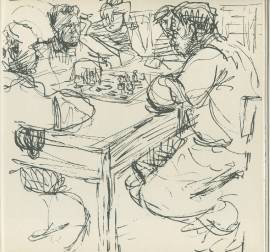 לאה גולדברג הרישום הארצישראלי כמו כל שטחי אמנות אחרים אצלנו לא יצר עדיין את הסגנון המיוחד שבארץ הזאת. עלינו להודות: עדיין איננו. אבל מיטב הרישומים המוגשים לפנינו, פה ושם מבצבץ ההד הכללי של הזמן שאנו חיים בו, סגנון התקופה, לא בנושאים מרעישים, לא בסיסמאות גדולות, אלא בעצם הקו, בתפיסת הצורה, ברמז, בדפורמציה, בהלך נפש. זה הנעים והכובש את הלב ברישומיו של א. גלעדי: איננו רודף אחרי נושא כולל, איננו מסתתר מאחורי רעיונות גדולים שאינם רעיונותיו. דברים קטנים, כביכול, החולין שלנו. כל אדם עם עצבונו ומרדו, כל קו של בית שאנו גרים בו, שאנו בנים לעצמנו כאן עלול לבטא במידה רבה לאין-ארוך מאשר הפראזה 0אחת היא אם ספרותית היא או ציורית) הנשמעת תמיד במשוא-פנים. יש כאן יחס טוב לכל המקיף אותנו ויחס של כאב. האשה באמהותה, דמעת הילדים, פת הלחם על השולחן שלנו ( חדר-אוכל בקיבוץ) אותה עזובה שבראשית מעשה- בכפר דייגים הקטן(עין-גב) ובפגישתנו הראשונה, הזהירה ביותר עם החי אשר בטבע- הסוס הזה באורווה, שזה עתה למדנו לאהבו ושאין לנו עדיין שיגרה לביטוייו, כפי שישנה אצל עמים צאצאי אבירים והאיכרים שהסוס היה תמיד חלק מחייהם. וע הכל : אותו היסוס קל, אותה תהייה של קווים, המנסה לספר לנו, כי העולם הזה והחלום על העולם הזה לא היו עדיין לשלמות איתנה וקיימת של צורה מקודשת על ידי בטחון המסורת שבעבר ועתיד; אותו רטט של ניחושים שהצייר איננו חייב כלל לדעת אותו, אבל הזמן מצווה אותו עליו בעל-כורחו. |