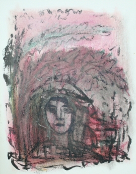Lea Goldberg is a well known poet and writer. Her numerous publications span the fields of poetry, drama, essays, childrens’ stories and rhymes, and translations of classical literature. Few people are aware that she also sketched and painted from a young age, and continued to do so throughout her life and especially during her last years. Painting was for her complementary to writing and drew from the same source of inspiration. Goldberg had a vast knowledge of art history. In her youth she studied art and was familiar with the various styles of visual art, not merely from theoretical study but also from practicing various artistic techniques. Drawing was a private and personal matter for her. She focused on the work itself, disregarding the audience's taste or the effect on the viewer. Her artworks were made spontaneously, not concentrating on the technique, but mainly as an expression of ideas, emotional symbolic. Over the years she developed her own personal style. In her drawings and illustrations Goldberg engaged with materials from her literary work, both her own original writing and the classical works that she translated. She often turned the characters of heroes from literature into drawings, paintings or collage artworks or other images conjured from her fertile imagination. Some of her works resemble theatrical decor derived from her stories. Others may describe events from her life, and on occasion we can discern her own portrait, clearly stated or implied, as a heroine standing on stage in the center of the image, as mise en scene, or in the shadows, as a ghostwriter.