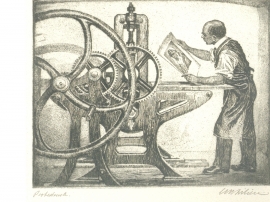 בתמונת השער לשירי עבודה, מתארת את דיוקן אבי האמן, חרט עץ עם כליו. לפי סטפן צווייג, במונוגרפיה