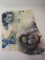 תערוכה זו היא שלוב של שני אמנים, אשר יש להם למעשה הרבה מהמשותף, למרות שהם שונים לחלוטין. שניהם עוסקים בגוף האדם, או לשם דיוק יותר בגוף האשה, מהכרותי האישית עם שניהם, הם רשמים מצוינים, ושניהם מעבירים את רישמיהם אל הנושא המעובד על ידם, וכמובן כל אחד בדרכו שלו. אתי, גם כשהיא נוגעת בארועים או בנופים וסביבה, הנושא המרכזי ואולי הבלעדי בו היא עוסקת בציוריה הוא גוף האדם- האשה. עתים גוף האדם השלם, עתים פרט זה או אחר בו היא מתמקדת, הצבעוניות עדינה מאד, ושיטת העבודה היא אמנם בשמן על נייר, אך בשקיפות רבה עד כדי כך שניתן לתאר אותה כאקוורלית. העבודה על נייר, מאפשרת לאתי שיטת עבודה מתפתחת. היא יודעת מהו גודל העבודה ההתחלתית, לעולם לא את גודלה הסופי, שכן היא מוסיפה ומדביקה ניירות לפי צורכים העבודה. עבודת השמן שלה היא עם מברשת יבשה ושכבת הצבע דקה מאד וכן אכן מתקבלת התחושה האקוורלית, דבר המחזק מאד את הרושם הרשומי, מעט פלקטי של העבודות. נקרת מאד השפעת ה- OLD MASTERS על אתי במשחק האור והצל על האובייקטים המצוירים. אין ספק ששיטת עבודתה ייחודית מאד ומעניינת.